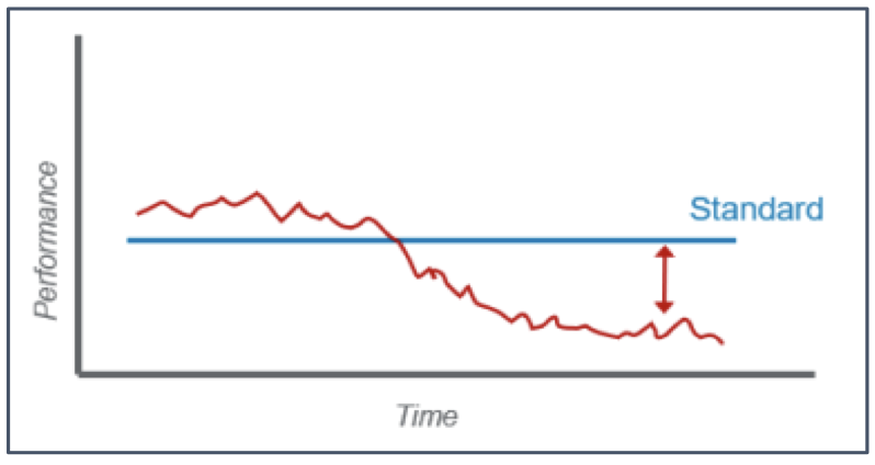 To make this more concrete; when your performance is below the current standard you can identify this as a problem. For example, when the quality level of our tank cleaning reduces over time this is a problem we need to address. You can identify these problems by analysing your performance.